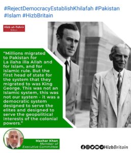 After the destruction of the Islamic foundation Khilafah state, in 1924C all the pillars of Islam fell like never existed the Western colonialists installed rulers over Muslims who ruled by other than all that Allah (swt) has revealed, through the systems of democracy, monarchy and dictatorship. Through the systems of misguidance, the colonists had free hand to make sinful military alliances with Muslim states, inciting them to fight each other, Secularism a “pet name” for kufr DENIAL OF ALLAH AND HIS LAWS WHICH REGULATE LIFE Jumhuriut is now belief of Muslims and world now and democracy is its ruling system capitalism based on freedom of ownership is its economic system and colonialism is foreign policy (which Islam reject) Dhujal paki army general Asim Muni speak of his secular faithless believe Muslims should have interfaith harmony the donkey does not know interfaith harmony in western secular system means abandon Islamic ruling and accept secular way of life