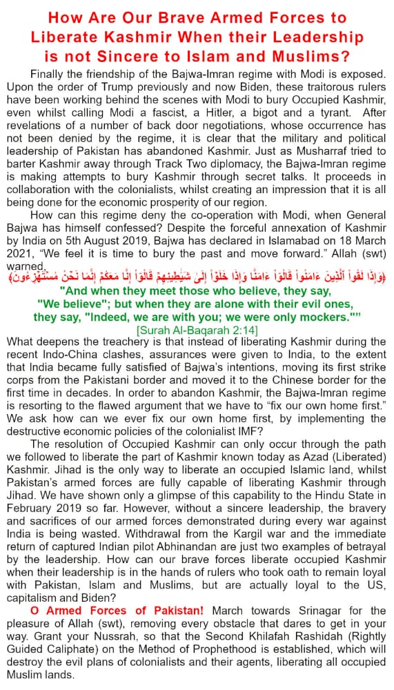 After the destruction of the Islamic foundation Khilafah state, in 1924C all the pillars of Islam fell like never existed the Western colonialists installed rulers over Muslims who ruled by other than all that Allah (swt) has revealed, through the systems of democracy, monarchy and dictatorship. Through the systems of misguidance, the colonists had free hand to make sinful military alliances with Muslim states, inciting them to fight each other, Secularism a “pet name” for kufr DENIAL OF ALLAH AND HIS LAWS WHICH REGULATE LIFE Jumhuriut is now belief of Muslims and world now and democracy is its ruling system capitalism based on freedom of ownership is its economic system and colonialism is foreign policy (which Islam reject) Dhujal paki army general Asim Muni speak of his secular faithless believe Muslims should have interfaith harmony the donkey does not know interfaith harmony in western secular system means abandon Islamic ruling and accept secular way of life