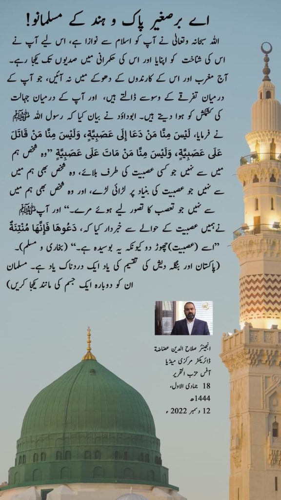 MUSLIMS WERE WARNED SEPARATION OF DHEEN FROM DHUNIA AND WERE ORDERED NOT TO LEAVE OR LET KAFIRS DEMOLISH ISLAMIC STATE ALL THE MUSLIMS SHOULD HAVE GIVEN THEIR LIVES TO ISLAMIC CAUSE BUT THEY REFUSED