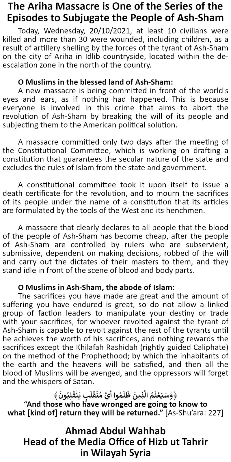NOTIFICATION TO MUSLIMS Hizb Tahrir has published the islamic constitution for mujahideen in Syria“This [Qur’an] is notification for the people