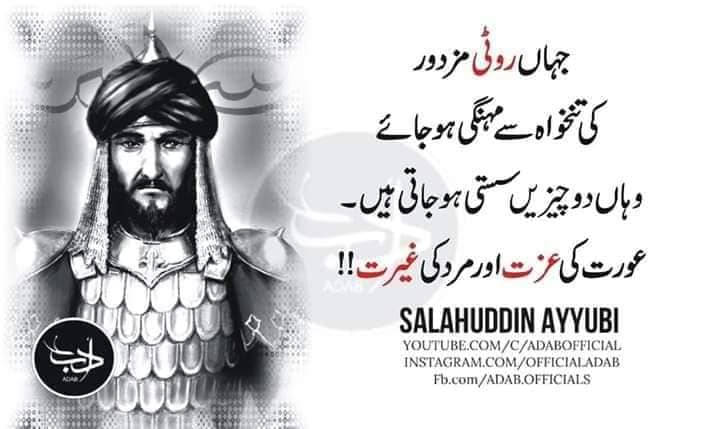 SALAHUDDIN SAID WHERE BREAD BECOME MORE EXPENSIVE THAN DAILY GAGE OF LABOUR TWO THING BECOME VERY CHEAP HONOR OF WOMAN AND MANS GHAIRUT PRINCIPLED
