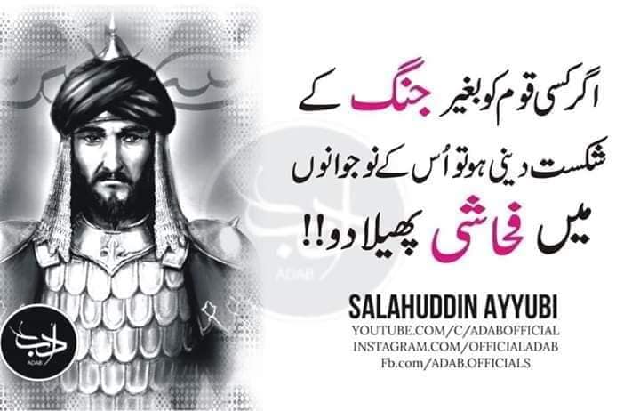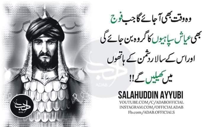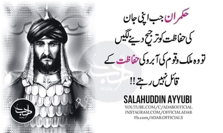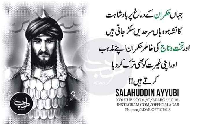 SALAHUDDIN SAID WHERE RULER IS INTOXICATED WITH KINGDOM RULERS GIVE UP HIS MUZHUB RELIGION AND PRINCIPLED GHAIRUT BEST EXAMPLE IS SET IN PAKISTAN AND SAUDI ARAB