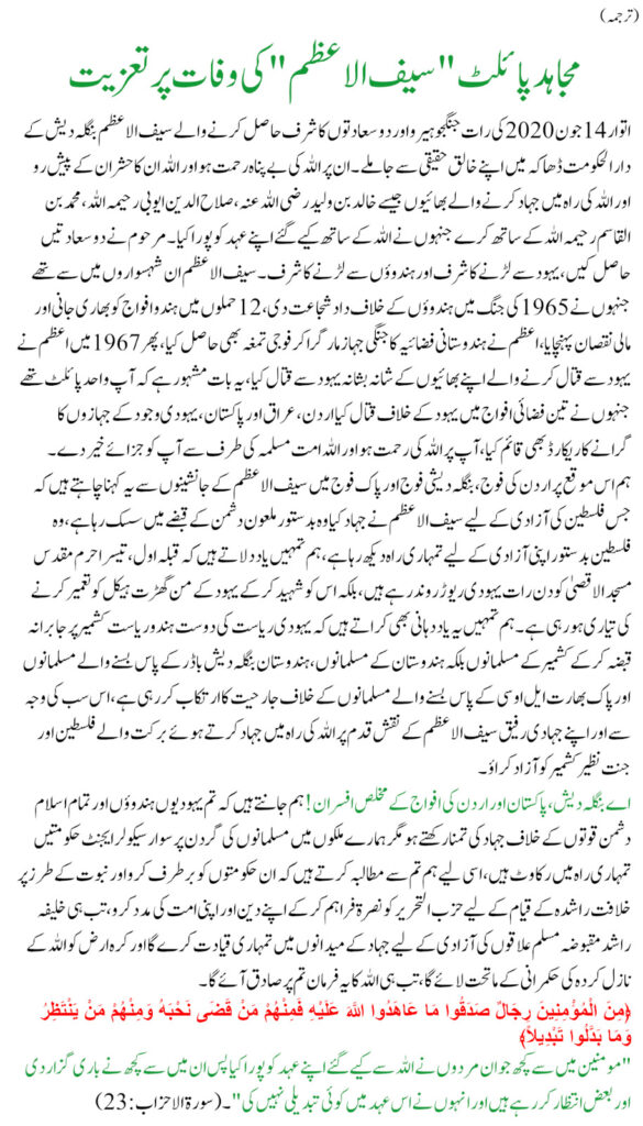 SALAHUDDIN SAID TIME WILL COME WHEN ARMY WILL BE A BUNCH OF PORNO GRAPHIC pornographic AND THEIR GENERALS WILL BE BEHEST OF ENEMIES
