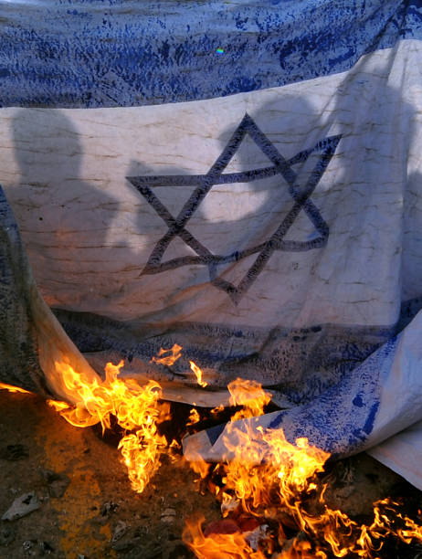 Pakistani students of Islami Jamiat-e-Tulba burn an Israeli flag during a protest rally in front of the parliament building in Islamabad on December 3, 2008. Some 2,000 students December 03 vowed to defend Pakistan against any aggression amid tensions with India over terrorist attacks in Mumbai. AFP PHOTO/Farooq NAEEM (Photo by Farooq NAEEM / AFP) (Photo by FAROOQ NAEEM/AFP via Getty Images)