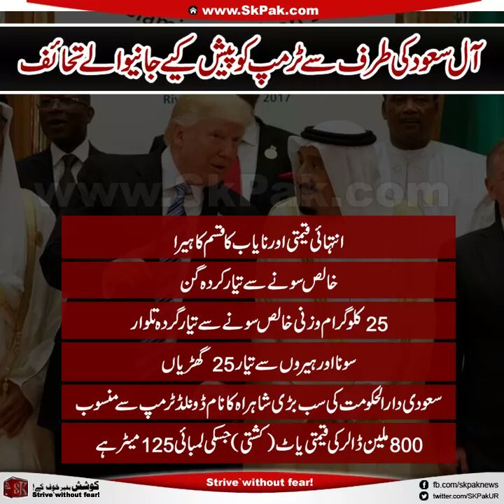 SAUDI GIFTS GIVEN TO AMERICAN MESSENGER TRUMP LEAST COST IS BILLION IN $$$ WELL PROPHET SAID ALL NATURAL RESOURCES PETROL GAS ARE MUSLIMS WEALTH