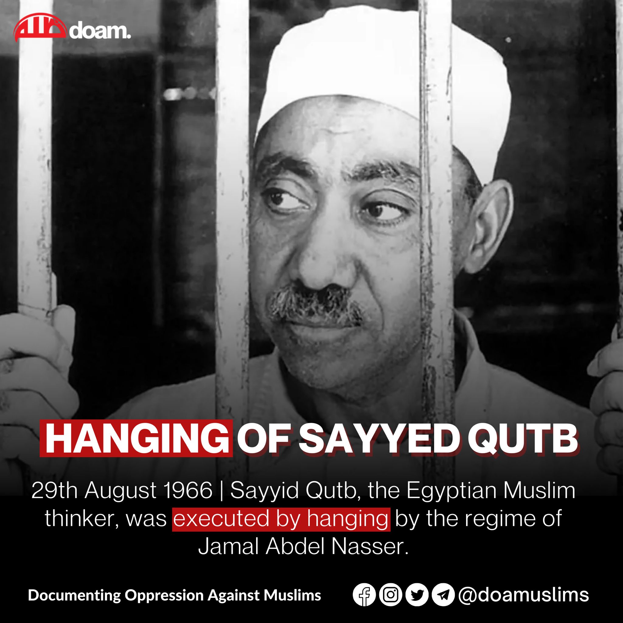 SYAD QUTTUB WAS KILLED BY GOVERNMENT OF EGYPT 1966
