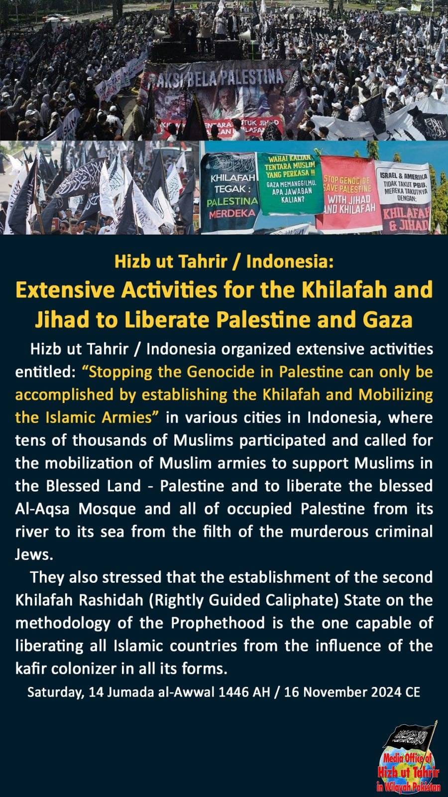 Part 408 circular Hizb events in 104 anniversary of death of khilafat state Indonesia extensive activities for khilafah Gumrah Imam mosque Muslims became stones no protests for Islam Hizb ban in Pakistan India prosecution Uzbekistan
