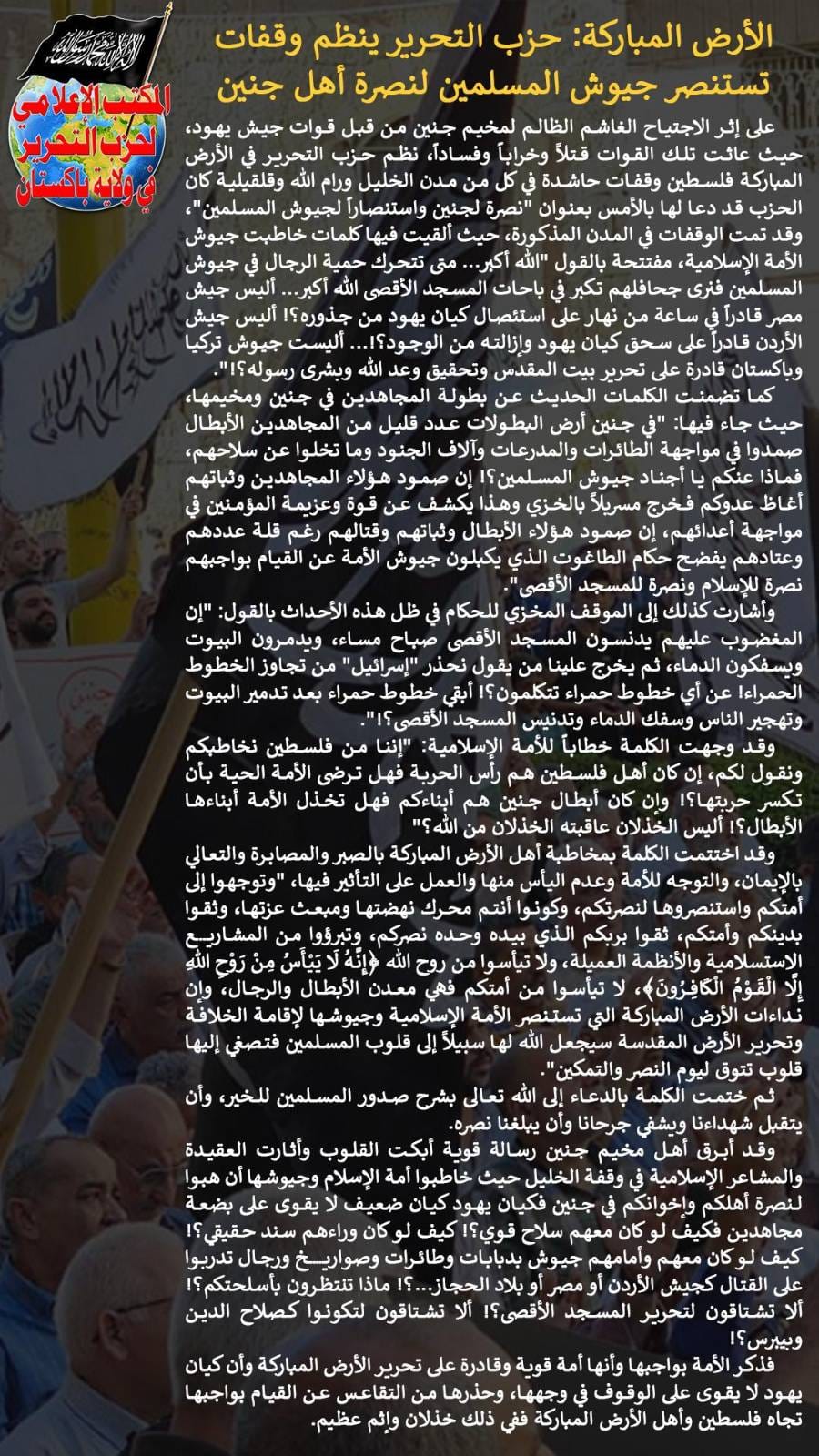 HIZB EXTENSIVE DRIVE TO ESTABLISH KHILAFET STATE OF MESSENGER MUSLIMS ARE NOT EAGER TO HELP THE CAUSE