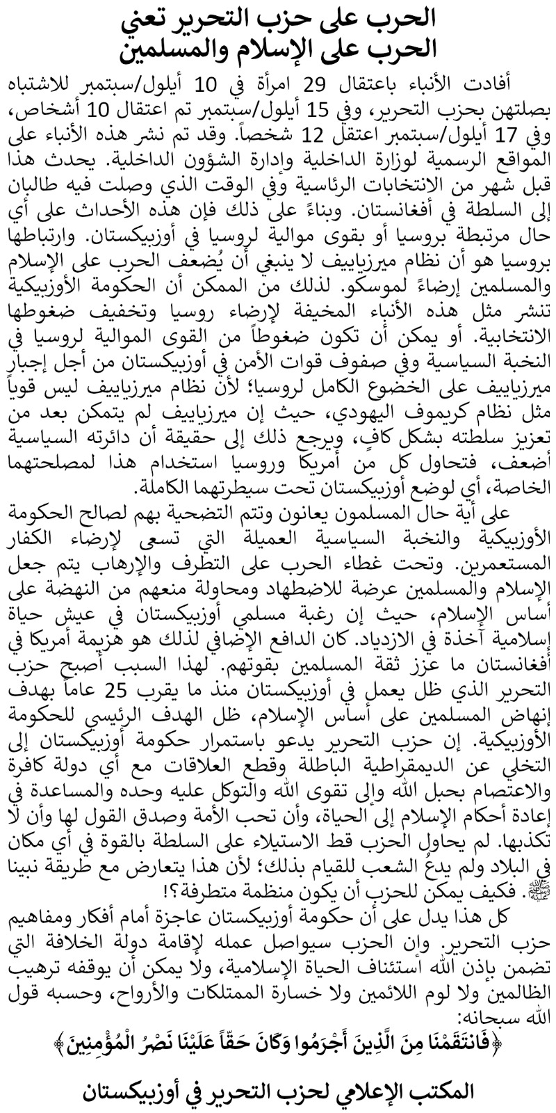 HIZB PERSECUTION IN UZBEKISTAN