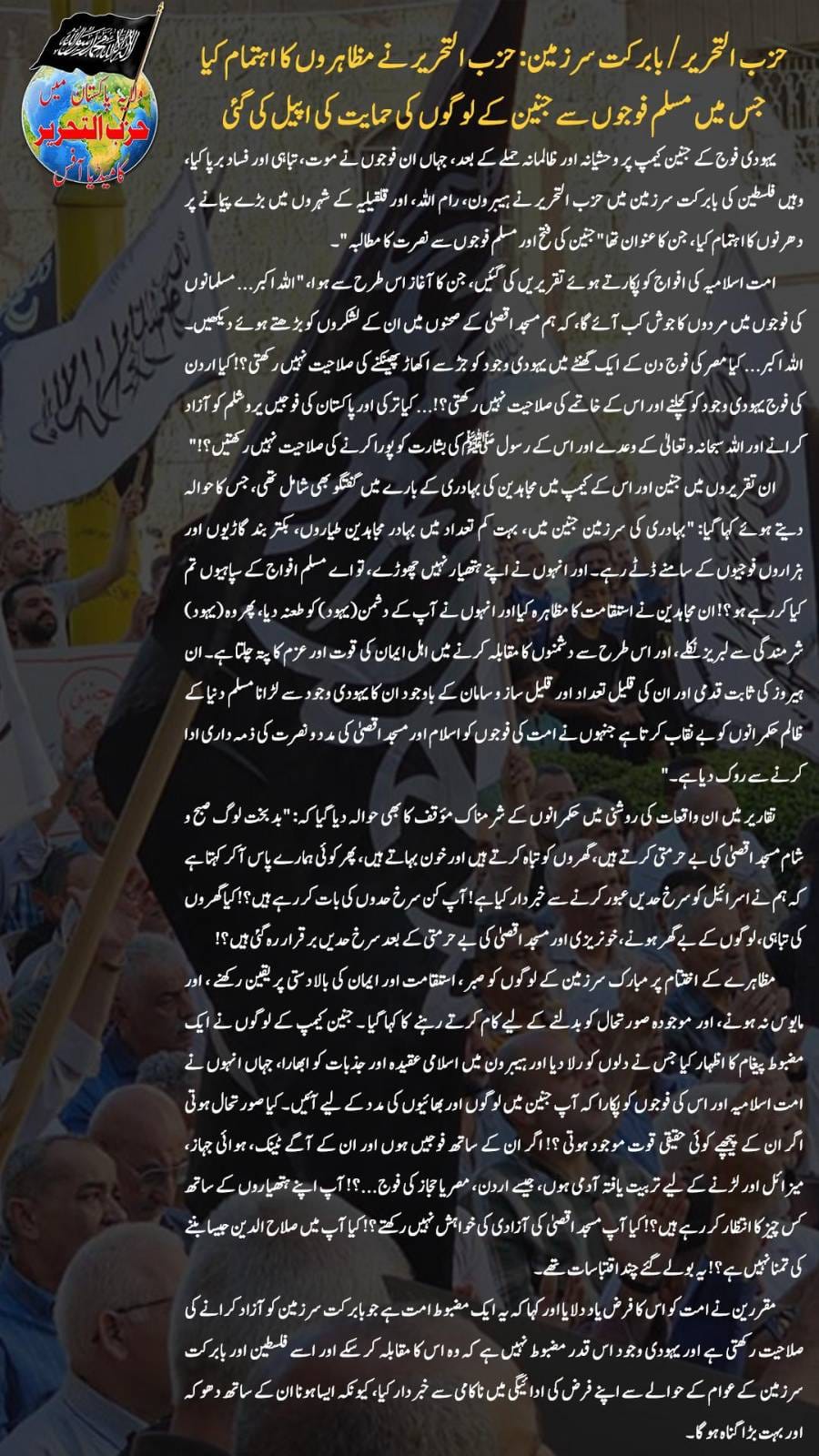 HIZB EXTENSIVE DRIVE TO ESTABLISH KHILAFET STATE OF MESSENGER MUSLIMS ARE NOT EAGER TO HELP THE CAUSE