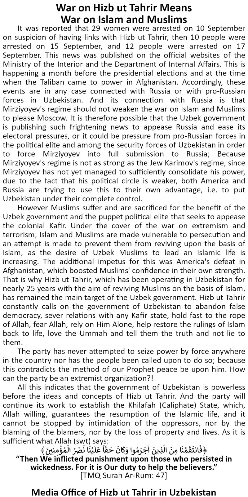 HIZB PERSECUTION IN UZBEKISTAN