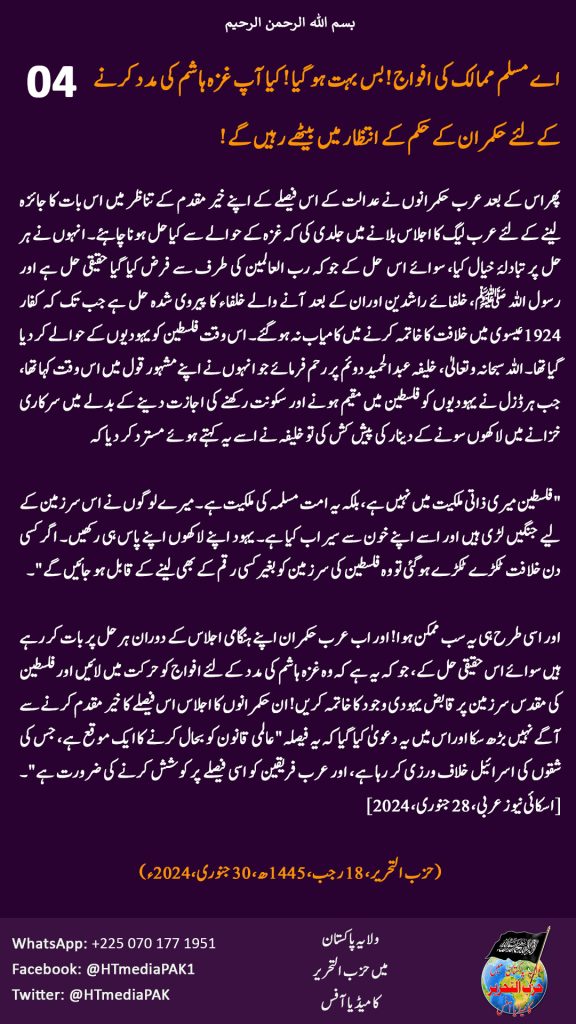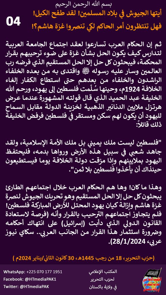 Part 400B 18 Rajuab 1445 30 Janu 2024 war in gaza exposed all Muslim saudi Turkey Pakistan Rulers and army protected Israeli jews entity Speech of atta bin khalil Abu Rishta ummer Jamat Hizb Tahrir