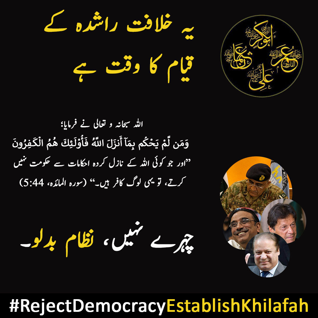 MUSLIMS MUST CHANGE THE PRESENT EVIL SYSTEM OF JUMHURY FAITHLESS RULING AND REPLACE IT WITH ISLAMIC RULING LAWS OF ALLAH WILL GOVERN (NO MAN WILL GOVERN)
