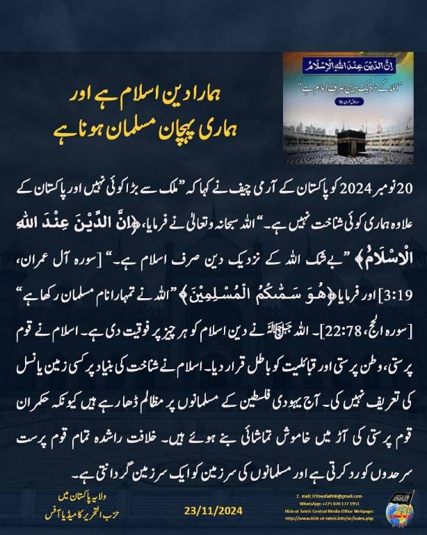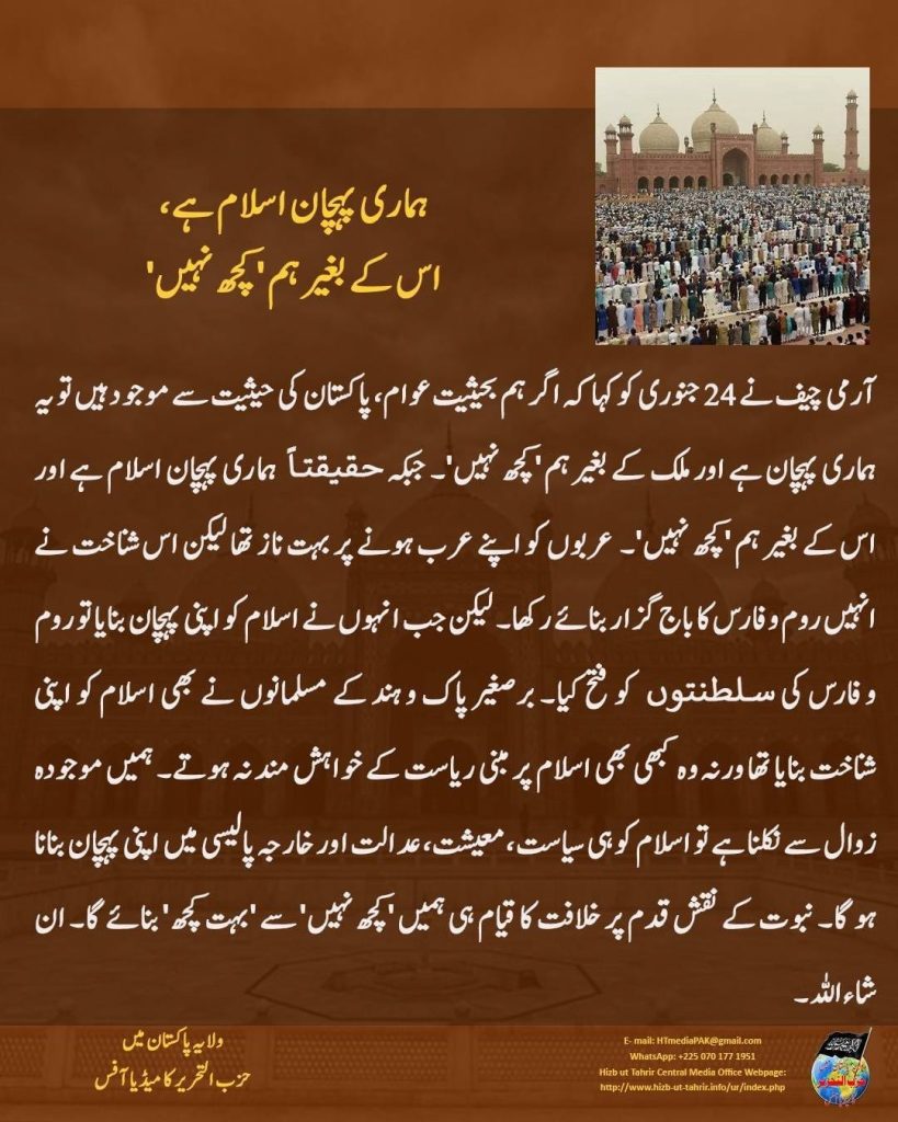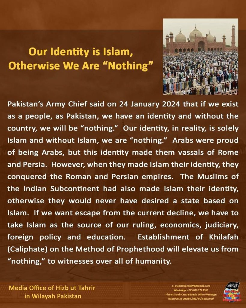 ARTICLE OUR ID IS ISLAM NOT PAKISTAN OR ARABS