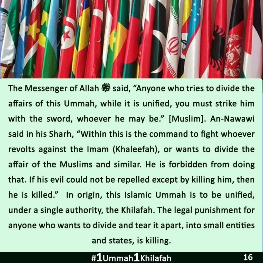 PROPHET ORDERED EVERY MUSLIM TO STRIKE THE NECK OF WHO TRIES TO DIVIDE THE MUSLIM NATION BUT IN 1924 MUSLIMS SUBMITTED TO DIVIDE