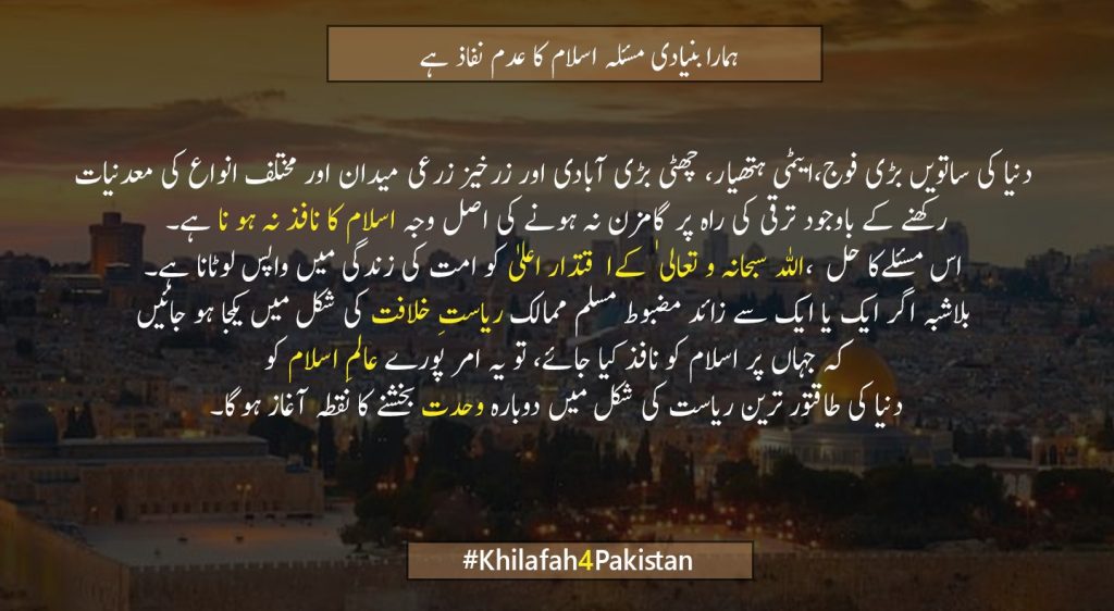 BASIC ISSUE IS ABSENT OF IMPLEMENTATION OF ISLAM SHARIA LAWS A COMPLETE CONSTITUTION OF ISLAM ONLY ESTABLISHMENT OF KHILAFAT IS THE SOLUTION