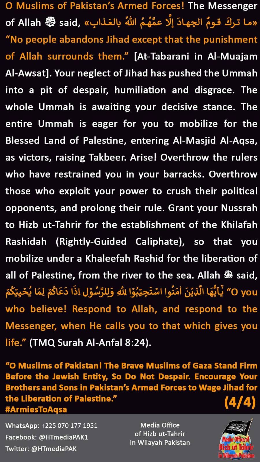 Part 124B Indeed khalifa is but a sheild from behind who people fight and are protcted solution for philistine and Kashmir is not resolution but jihad the pillar of islam stands on state khilafat does not exist